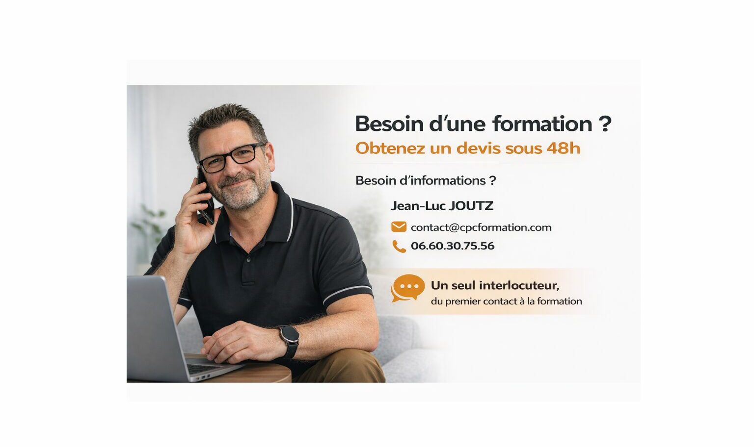 Un seul formateur, un seul interlocuteur, une qualité constante.