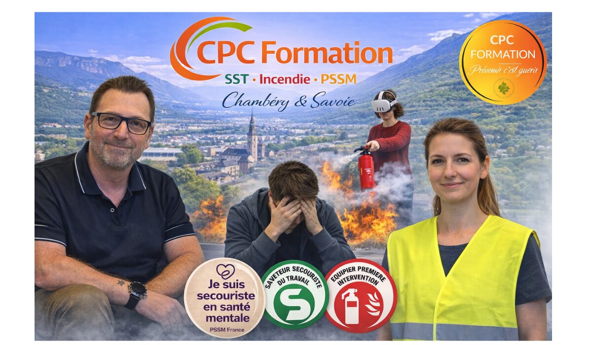Basé à Saint-Jeoire-Prieuré, près de Chambéry, CPC Formation se déplace facilement dans tout le secteur de la Savoie pour organiser vos formations en secourisme, SST, incendie, ou santé mentale au travail.